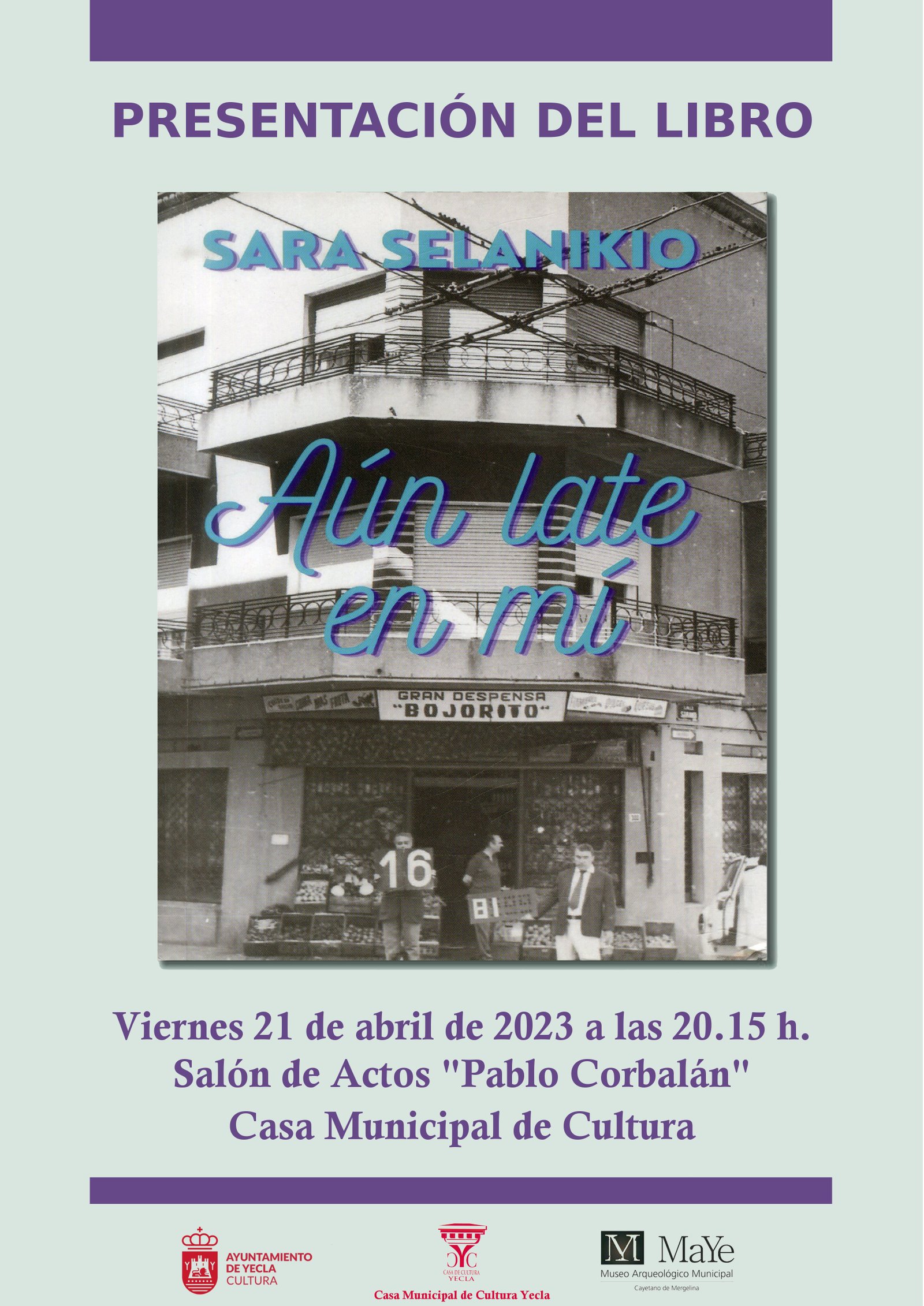 Lugar: Salón de actos «Pablo Corbalán» de la Casa Municipal de Cultura.