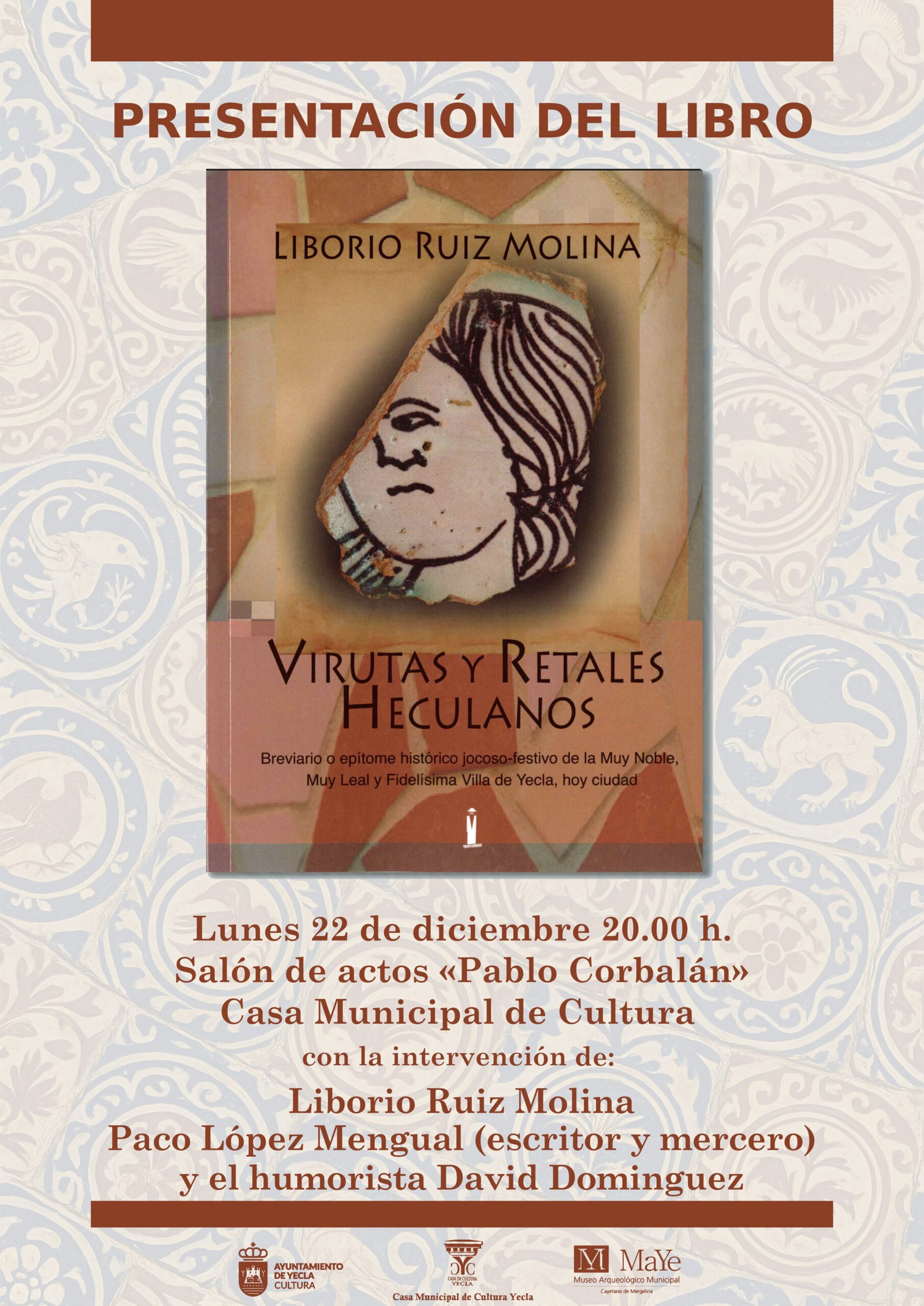 Lugar: Salón de actos «Pablo Corbalán» de la Casa Municipal de Cultura.