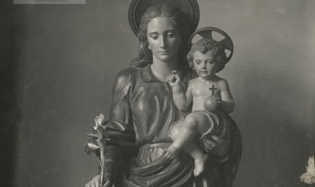 Título: Virgen sedente con niño Autor: Venancio Marco Fecha: c. 1910 Reverso nota textual:–